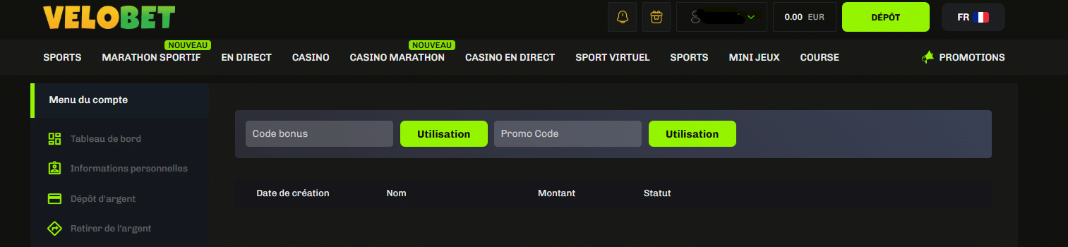 Dépôts et retraits sur Velobet Casino